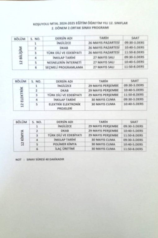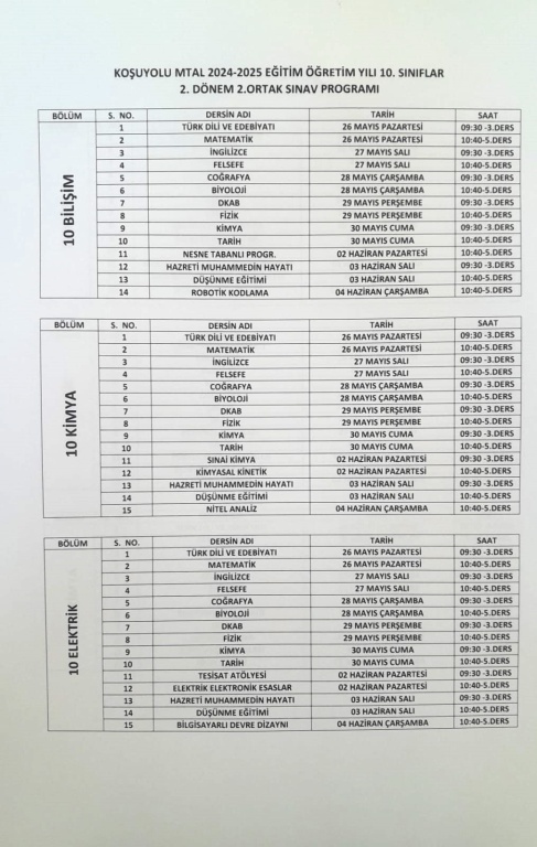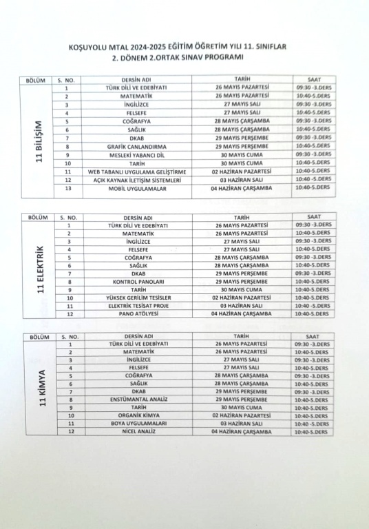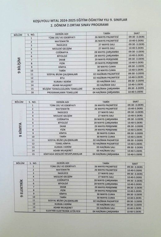 2024-2025 2.DÖNEM 2.ORTAK SINAV TAKVİMİ